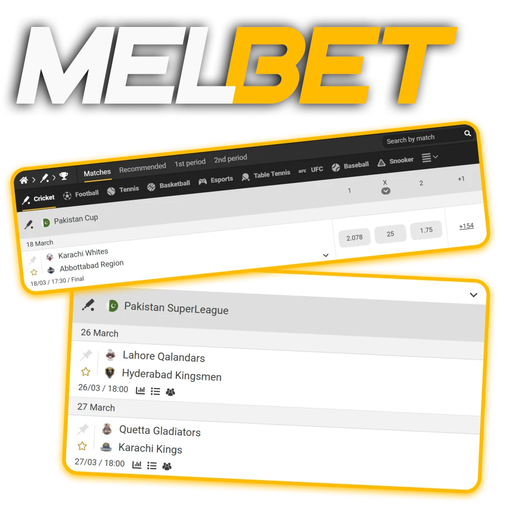 We offer Pakistani users a full range of cricket betting options, including international matches, domestic leagues, and major tournaments throughout the year. The Melbet online bookmaker offers pre-match and live betting with competitive odds on all formats, including Tests, ODIs, and T20s.